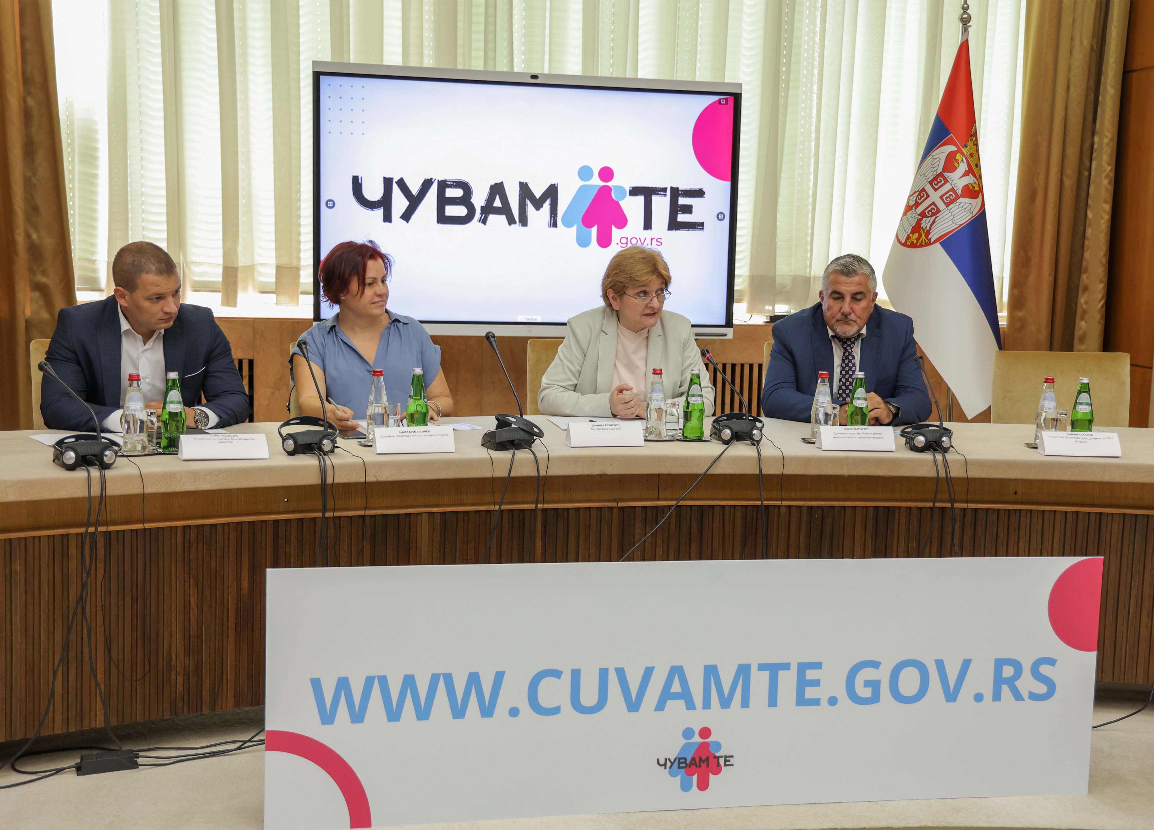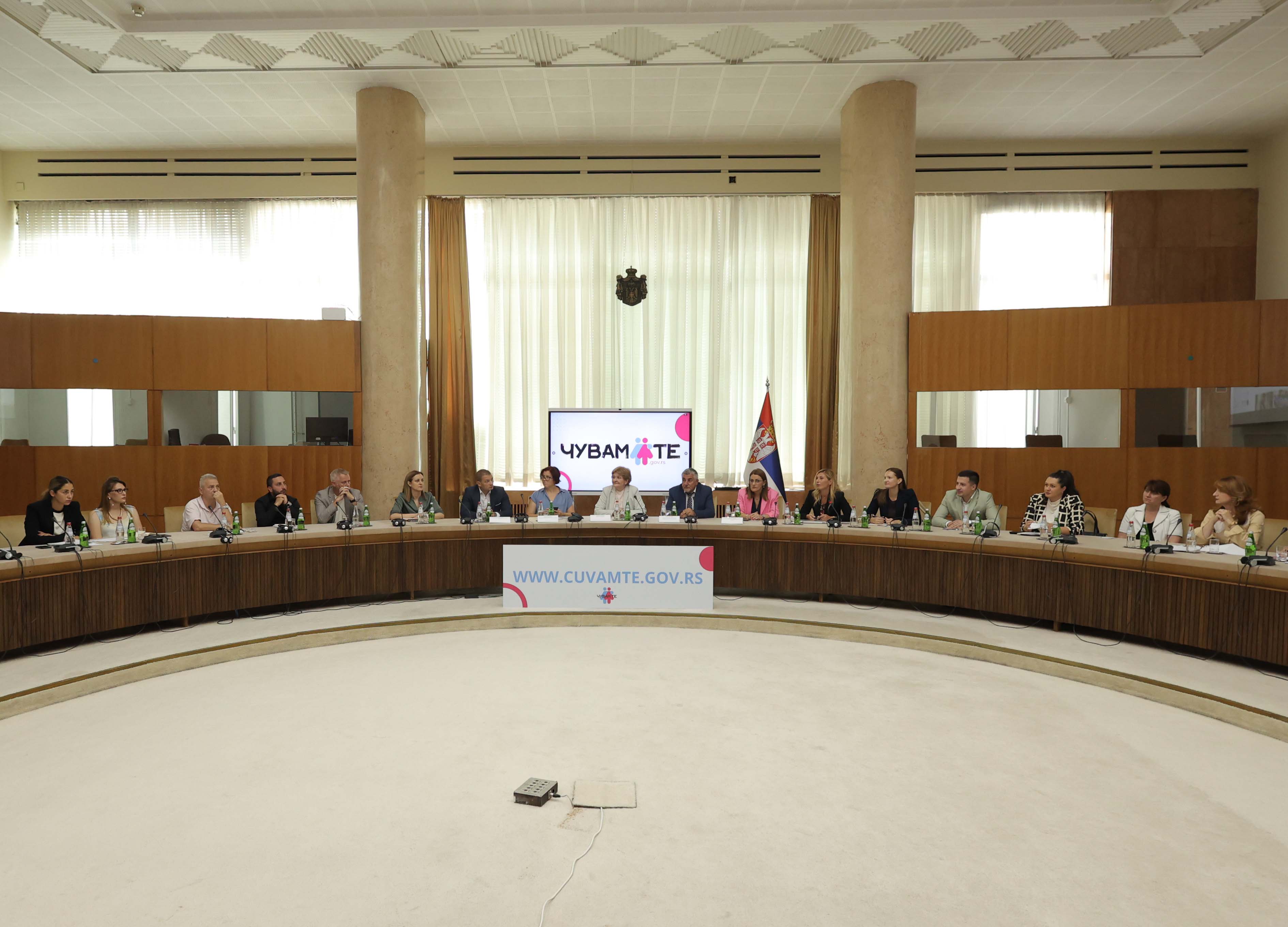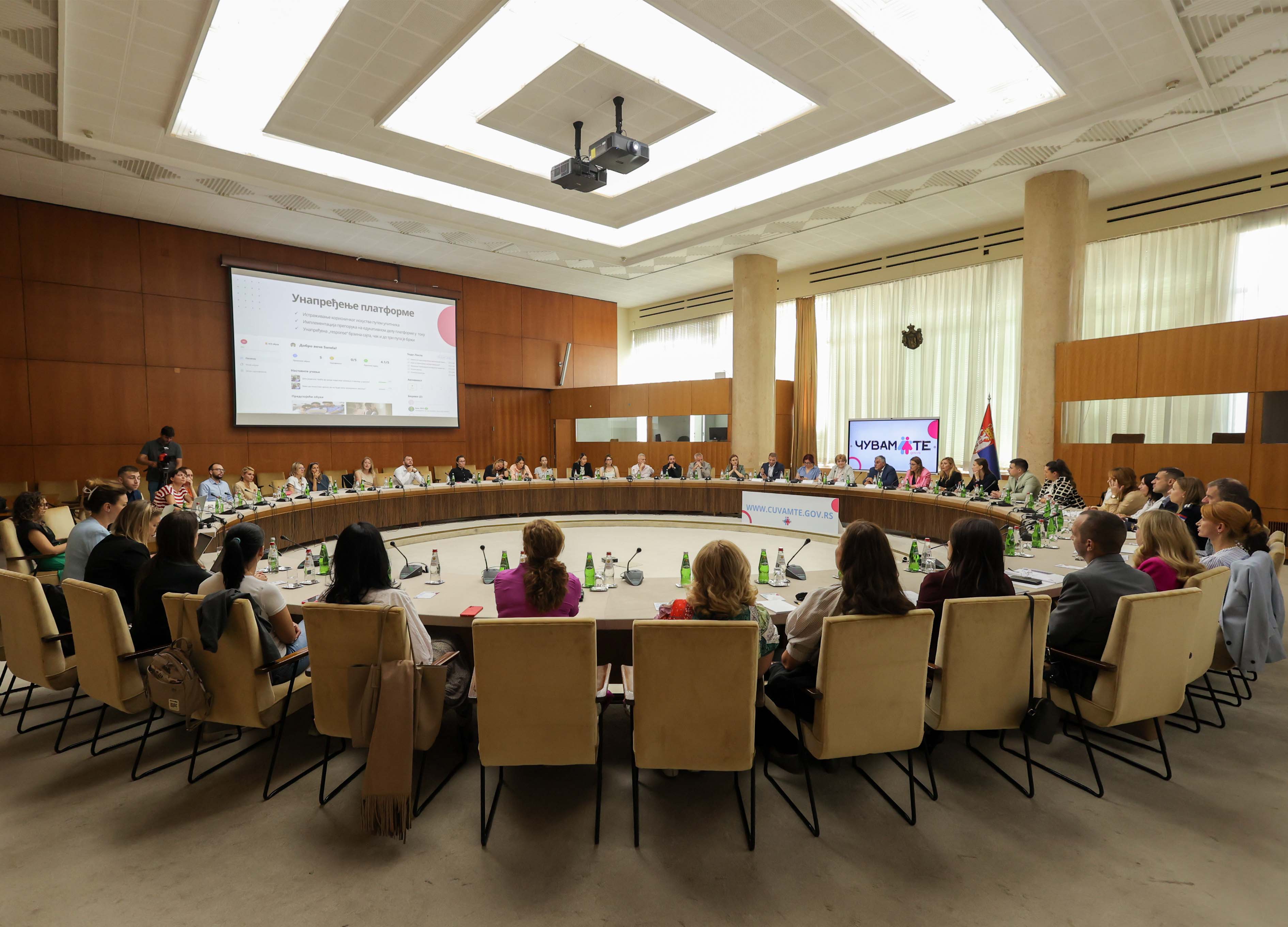 Кабинет председнице Владе Републике Србије, Министарство информисања и телекомуникација и Канцеларија за ИТ и еУправу данас су у Палати Србија одржали округли сто на тему представљања досадашњег рада Националне платформе за превенцију насиља које укључује децу „Чувам те“, као и планова за њено унапређење. Округли сто отворила је министарка здравља Даница Грујичић у присуству представника цивилног друштва и Владе Републике Србије, Канцеларије за ИТ и еУправу, Министарства за рад, запошљавање, борачка и социјална питања, Министарства за бригу о породици и демографију, Министарства просвете, Министарства унутрашњих послова, Министарства здравља, Министарства информисања и телекомуникација, Министарства правде и Републичког јавног тужилаштва.